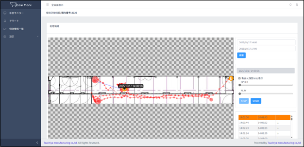 牛舎モニター画面から牛の居場所を確認することができます。